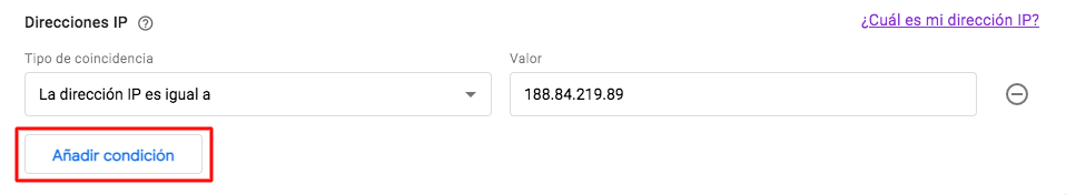 Si tenéis varias IPs en vuestra empresa u organización es posible añadir más en el apartado de Direcciones IP con diferentes tipos de coincidencia.