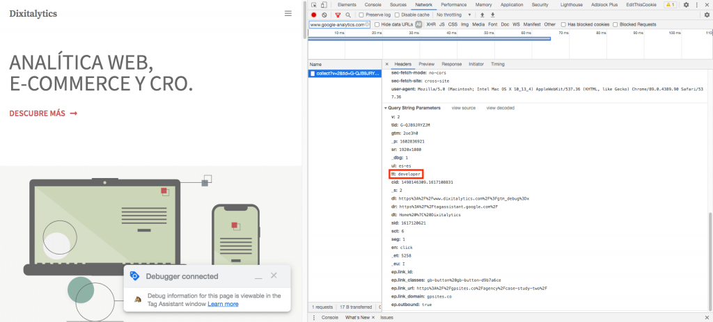 También es posible comprobar estos datos haciendo clic derecho en inspeccionar elemento dentro del sitio web y revisando el apartado network donde aparecen los parámetros enviados.